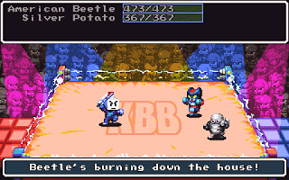 Microwave: Every RPG needs a dude with elemental magic attacks, but most games don't feature a dancing potato man who fires magical beams via sick dance moves. All of Potato's magic is inspired by food prep or food pun. Here we see him using an electric shock attack that teaches an important lesson: Don't put metal in the microwave!